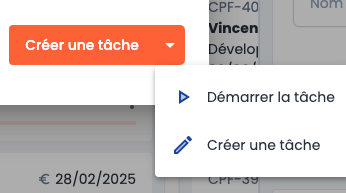 Dans le cas de la création d'une tâche, il est possible de la marquer comme démarrée via le bouton Démarrer la tâche.